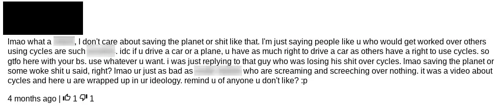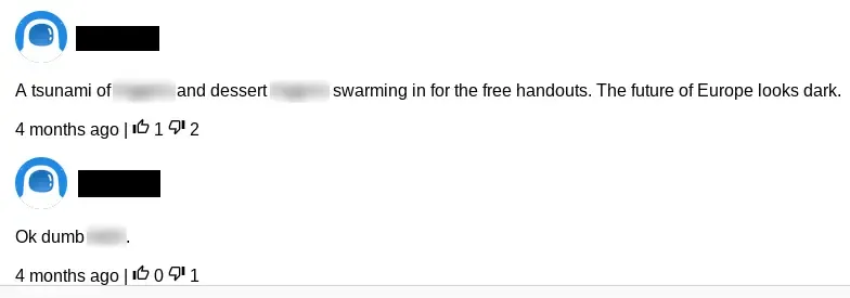 Some examples of comments (blurred bad words and redacted names):